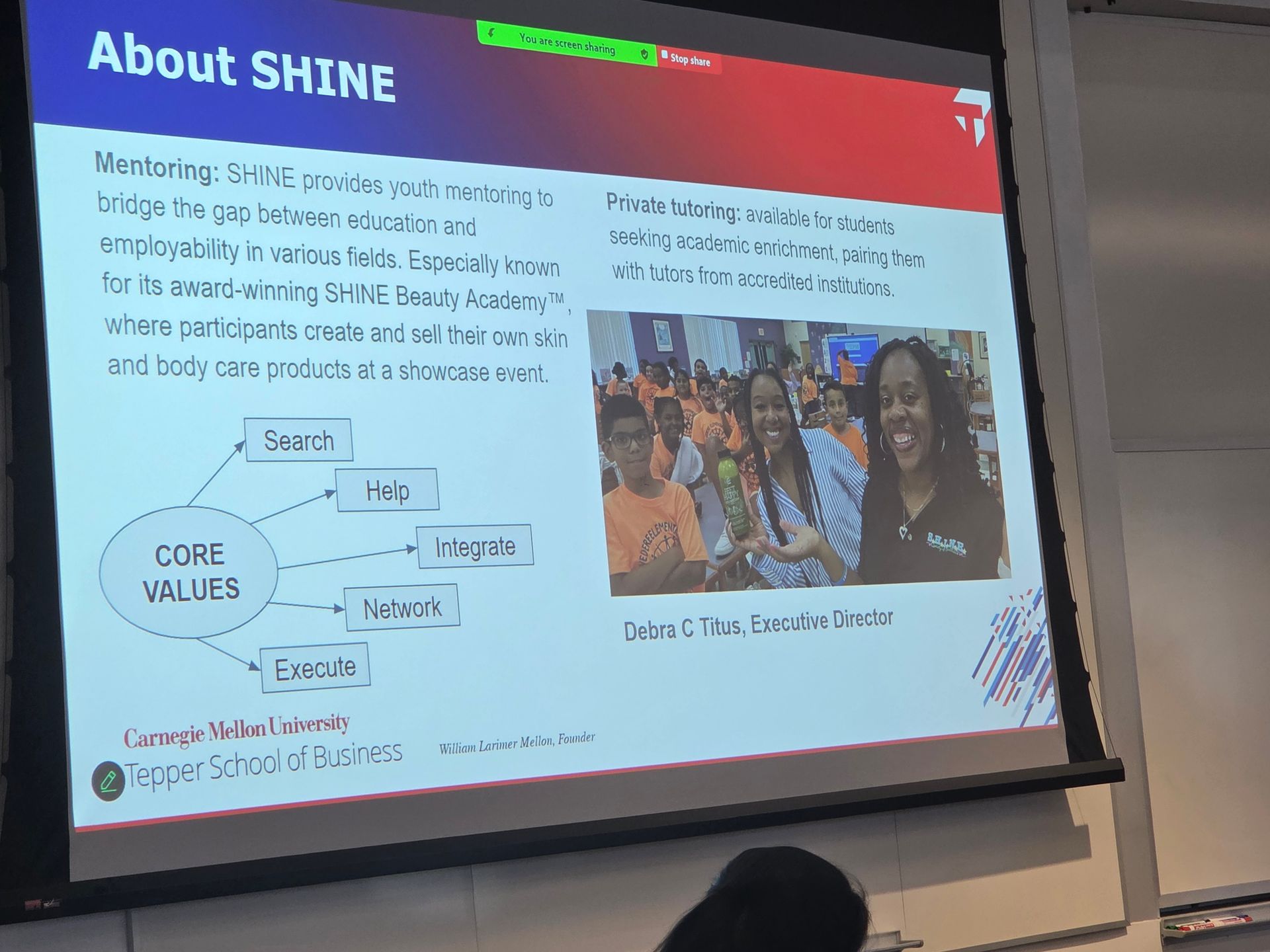 On April 18, 2025 SHINE Society of Excellence reached a new milestone in its mission to empower underserved youth through innovation and entrepreneurship! SHINE Executive Director, Debra Titus attended the Annual Pro Bono Consulting Symposium hosted at Carnegie Mellon University's Tepper School of Business! There, graaduate students shared bold new approaches to revenue generation, investmebnt strategy, and scalable growth models for many local non-profits...and SHINE being one of the eight non-profits affored this amazing opportunity!